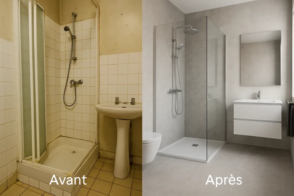 Réparation de fuites, pose de robinetterie et rénovation complète de salle de bain.