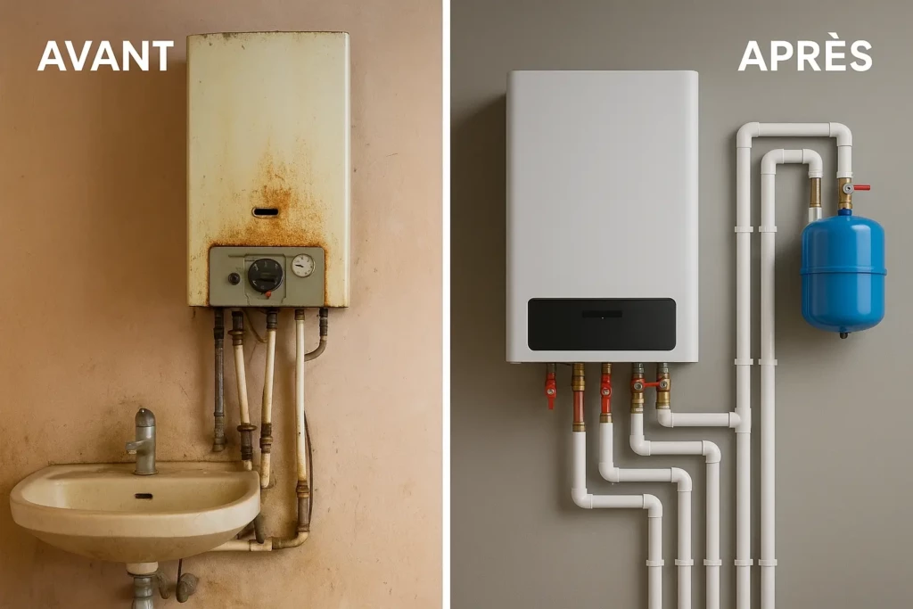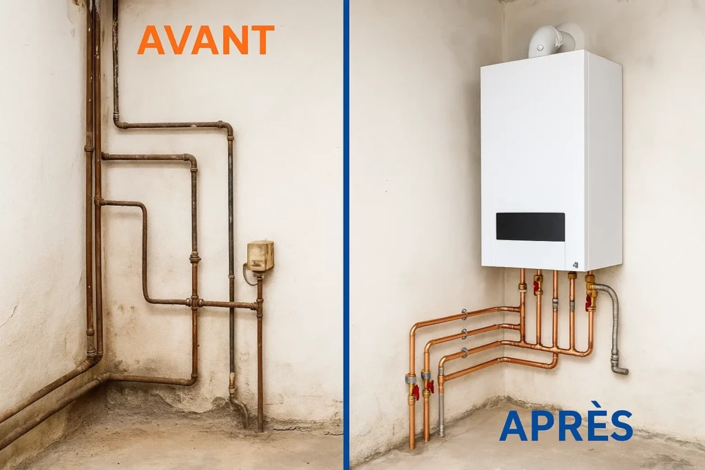 installation de chaudières gaz à condensation, pompes à chaleur performantes, et rénovations complètes de salles de bain.