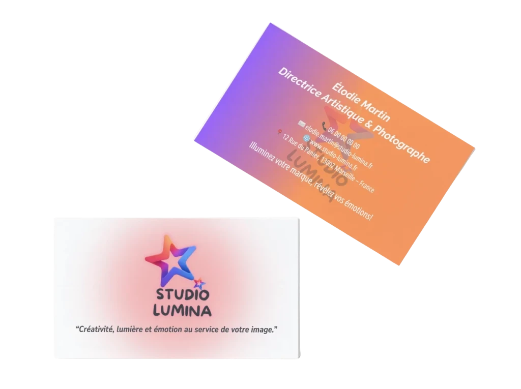 En complément, nous concevons vos supports de communication visuelle : cartes de visite, flyers, affiches et visuels réseaux sociaux, pour assurer une cohérence totale entre votre univers graphique et votre présence digitale.
